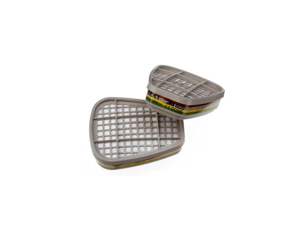 3M 6059 ABEK1 flitre třídy A1 chrání dýchací cesty před organickými výpary (např. xylen, toluen), anorganickými výpary (např. chlór, bróm), kyselými plyny (např. oxidy síry) a čpavkem (amoniak). Jsou kompatibilní s dýchacími maskami série 3M 6000 a 3M 7000. Jsou lehké, mají nízký odpor při dýchaní a neomezují rozhled.