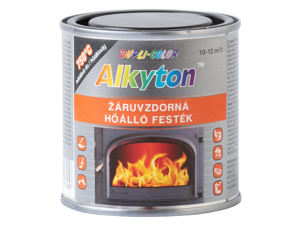 ALKYTON žáruvzdorná barva je matný nátěr na bázi silikonem modifikované alkydové pryskyřice. Je určen k opravám a menším nátěrům oceli a předmětů jako krby, grily, kouřovody, kotlové armatury, výfuky aut apod. Poskytuje ochranu až do 750°C při aplikacích ve vnitřním prostředí anebo v krytém vnějším prostředí.