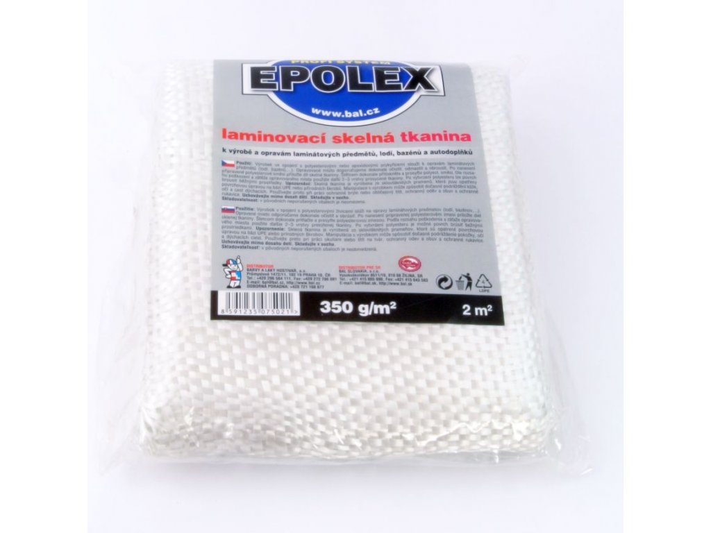 BAL EPOLEX hrubá skelná tkanina s gramáží 350 g/m2 slouží ve spojení s polyesterovými a epoxidovými pryskyřicemi k výrobě a opravám předmětů z technického laminátu (lodě, bazény, dětské skluzavky, autodíly atp.).