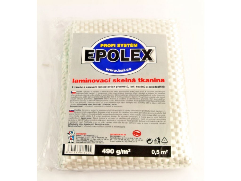BAL EPOLEX hrubá skelná tkanina s gramáží 490 g/m2 slouží ve spojení s polyesterovými a epoxydovými pryskyřicemi k výrobě a opravám předmětů z technického laminátu (lodě, bazény, dětské skluzavky, autodíly atp.).