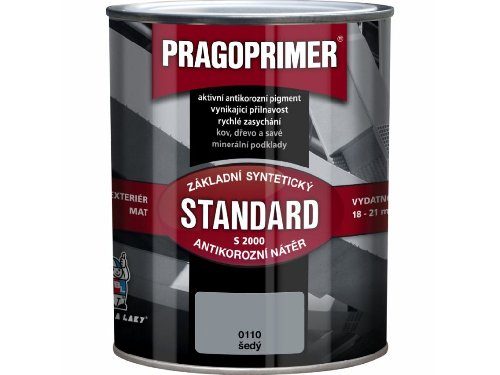 PRAGOPRIMER STANDARD S 2000 je univerzální základní syntetická barva s vynikajícími antikorozními vlastnostmi. Je vhodná na ocel, litinu dřevo a dřevotřísku v interiéru i exteriéru. Je rychleschnoucí a univerzálně aplikovatelná.