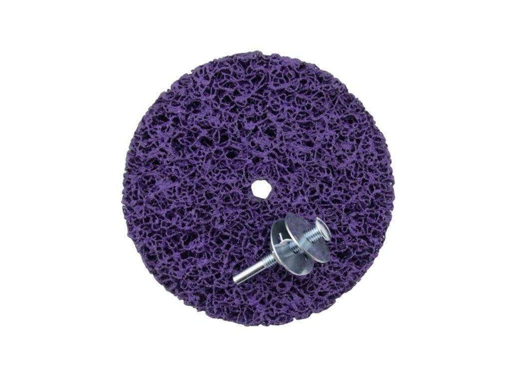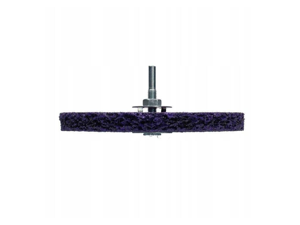 BLUE-CAR kotouč k odstraňování koroze D150 mm z tvrdé netkané textilie napuštěné pryskyřicí a abrazivním materiálem k rychlému a účinnému odstranění rzi nebo barvy z čištěných ploch. Vyznačuje se vysokou odolností a účinností za minimálního zahřívání povrchu.