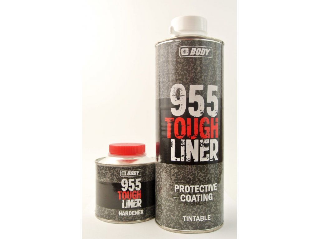 BODY 955 TOUGH LINER je ochranný vysoce odolný dvousložkový polyuretanový nátěr (obdobně jako RAPTOR). Je vynikající na ložný prostor pick-upu, SUV, off-road, 4x4, návěsu, přívěsu, dodávky, člunu, zemědělských strojů, ale i podlahy či nářadí. Je možné vytvářet různé efekty struktury výsledného nátěru. Nástřik je třeba natónovat. Případný odstín uveďte prosím do poznámky k objednávce.