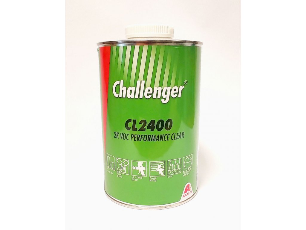 CHALLENGER 2400 Performance Clear je profesionální dvousložkový lesklý akrylový bezbarvý lak. Dosahuje vysokého lesku a odpovídá předpisům o organických rozpouštědlech (vyhláška 337/2010 Sb.). Základem je akrylově-polyuretanový kopolymer.