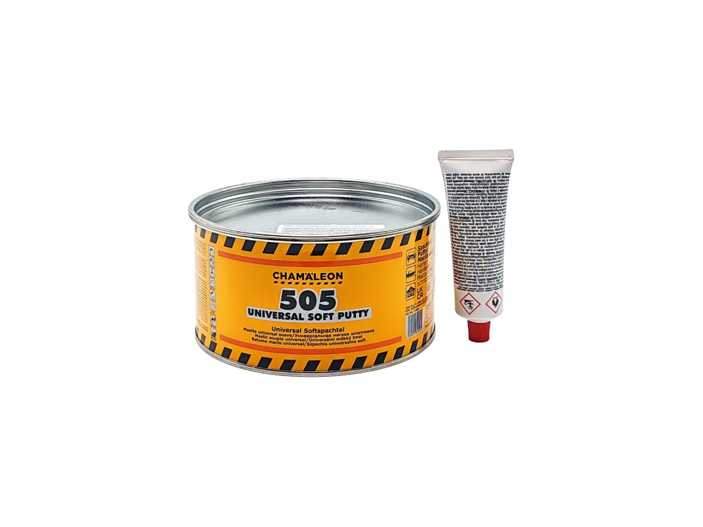 CHAMÄLEON 505 Super Soft plnící tmel je dvousložkový polyesterový špachtlový tmel na vyplnění malých nerovností. Má vynikající přilnavost na holém kovu, dřevu, betonu, starých vrstvách laku a plastech. Rychlé schnutí umožňuje kontinuální práci. Díky mikrojemným plnivům je možné dosáhnout velmi hladký povrch. Tmel je lehce brousitelný díky jeho pružné a stabilní struktuře. Vhodný i na velké plochy.