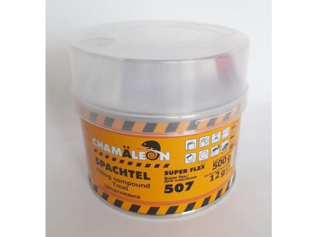 Chamäleon 507 SUPERFLEX je dvousložkový polyesterový tmel pro vyplnění škrábanců a proláklin na plastech i pro následné tmelení po svařování a lepení plastových dílů. Má velmi dobrou přilnavost na téměř všechny plasty (polypropylen, polyuretan, akrylonitril, styren-butadien, polyamidy, polyvinylchlorid) i na ocelové a pozinkované plechy karoserií. Je měkký a pružný, díky čemuž je ideální pro opravu hran a kontur.