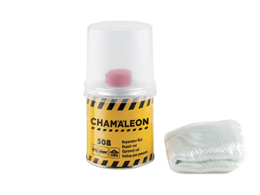 Dvousložková polyesterová laminovací souprava CHAMÄLEON 508 je vynikající pro drobné opravy děr anebo prasklin v laminátových dílech (obytné přívěsy, čluny), prorezivělých míst na karoseriích a předmětů z kovu, dřeva, betonu atd. Vynikající při výrobě forem a modelů. Skleněná tkanina nasáknutá polyesterovou pryskyřicí vytvoří pevný podklad pro nanášení dalších vrstev tmelů.