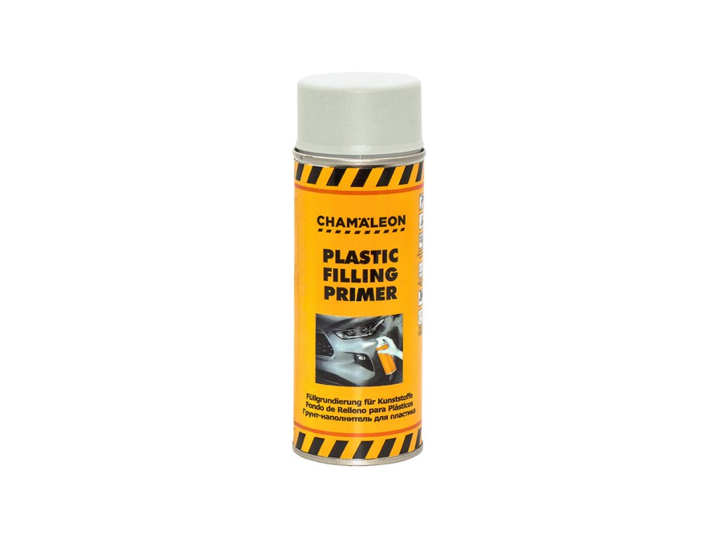 CHAMÄLEON sprej plnící základ na plasty (plnič na plasty) je rychleschnoucí základní barva na plasty s dobrými plnícími vlastnostmi pro použití na mnohé plasty běžně používané při opravách automobilů. Díky speciálnímu složení je aplikovatelný bez předúpravy (ohřívání) i na těžko lakovatelné plasty jako je např. polypropylen.