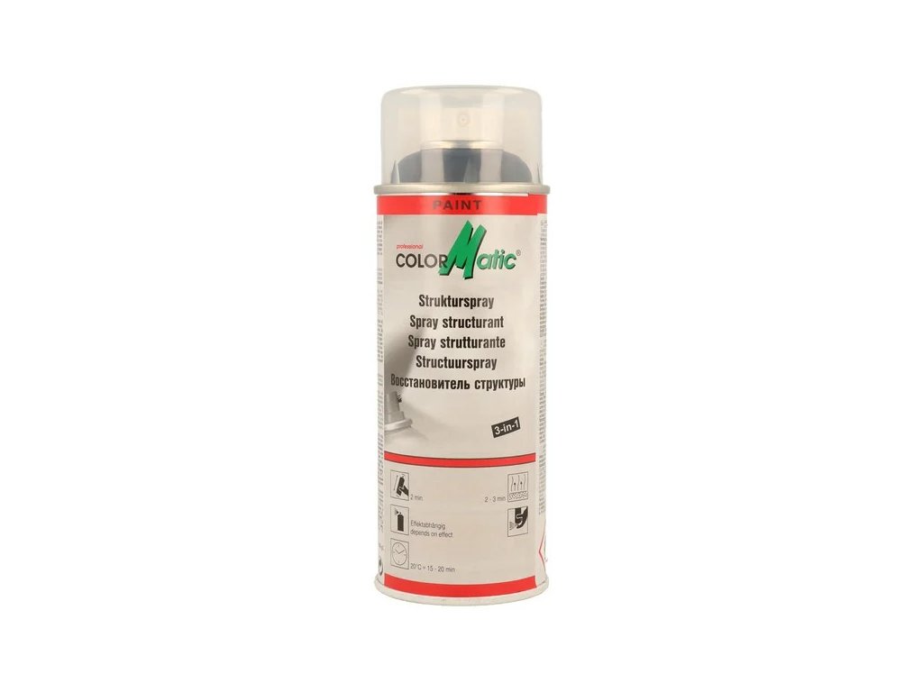 ColorMatic strukturní sprej obnovuje strukturu (texturu) poškozených plastů na vozidlech nebo vnějších dílech automobilů např. nárazníky, zrcátka, sloupky a tuningové díly, jakož i interiéry automobilů např. přístrojová deska, čalounění dveří, středová konzola apod.
