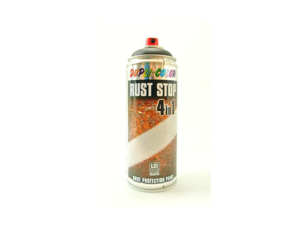 DUPLI-COLOR sprej RUST STOP RAL 9005 je speciální silnovrstvá černá barva, která vytváří aktivní antikorozní ochranu. Tento nátěrový systém využívá technologii LCI (Liquid corrosion inhibitor) a kombinuje 4 vlastnosti v 1 výrobku: základová barva, antikorozní ochrana, sprejová barva a krycí lak.