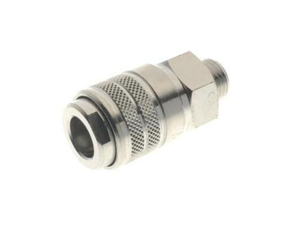 Profesionální rychlospojka ze série AIGNEP 160 na připojení rozvodu stlačeného vzduchu (pneumatické rozvody). Vyrobená z nerezavějící ocele. Typ připojení na vnější 3/8" závit (samec).