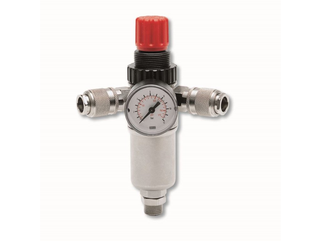GAV RPF-187R je výkonný nástěnný filtr stlačeného vzduchu s regulátorem tlaku do autodílny, lakovny i do pneuservisu. Filtruje částice do velikosti 10 mikronů. Má dvě připojení na rychlospojku a je dodáván s konzolou pro montáž na stěnu. Těleso redukčního ventilu je tvořeno kvalitním slitinovým odlitkem. Regulační rozsah 0 – 10 barů.