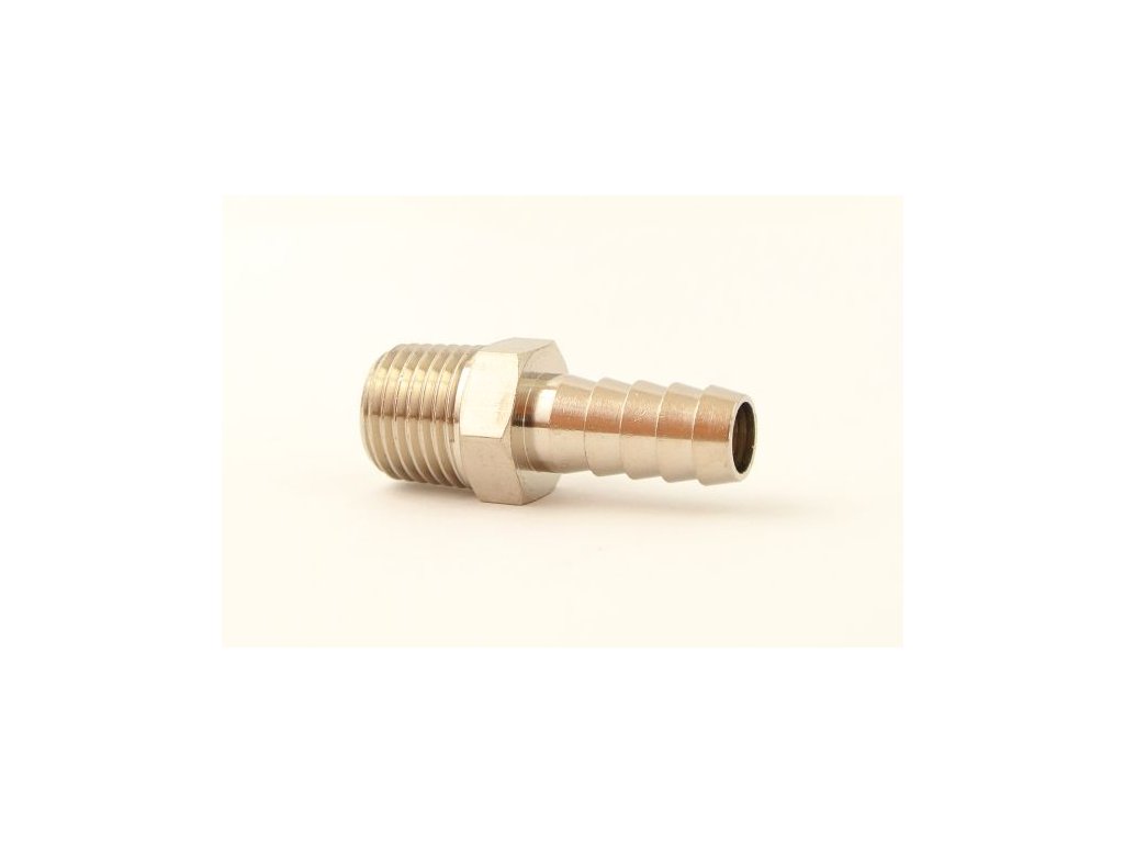 GAV spojka hadice – závit (nátrubek) pro připojení rozvodu stlačeného vzduchu. Vyrobeno z nerezavějící oceli. Vnitřní průměr hadice 9 mm, vnější závit (samec/male) ¼“a. Hadici zajistěte na spojce hadicovou sponou LUSCI.