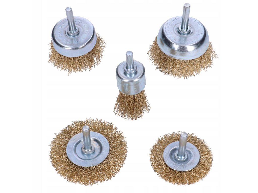 ITALKO sada 5 drátěných čistících kartáčů je vynikající k perfektnímu odstranění nečistot z různých povrchů. Po připojení na vrtačku si kartáče rychle poradí i se zaschlými nečistotami, rzí atd. Kartáče jsou vyrobeny z ocelového drátu s mosazným povrchem.