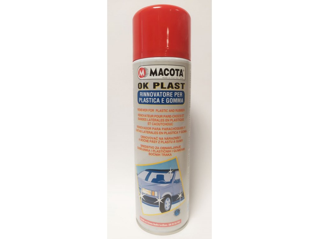 MACOTA sprej čistič a oživovač lesku plastů a pryže leští a obnovuje plastové a pryžové části auta jako přístrojová deska, spoilery, nárazník, boční plastové lišty. Po zaschnutí vytvoří na ošetřovaném povrchu vrstvu, která chrání před vlivy počasí a mycími prostředky. Jednoduchá aplikace, leskne se bez větší námahy!