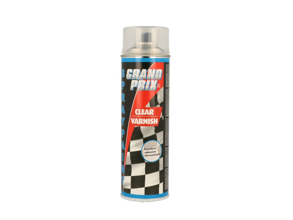 MoTip Grand Prix sprej bezbarvý lak slouží jako krycí lak pro akrylové a nitrokombinační spreje, jako např. metalické, perleťové, neónové apod. Zajistí brilantní lesk a zároveň dokonalou ochranu před poškrábáním, UV zářením a vyblednutím laku. Nemetalickým lakům (např. MoTip Grand Prix spreje Rallye) zajistí dodatečný lesk a ochranu.