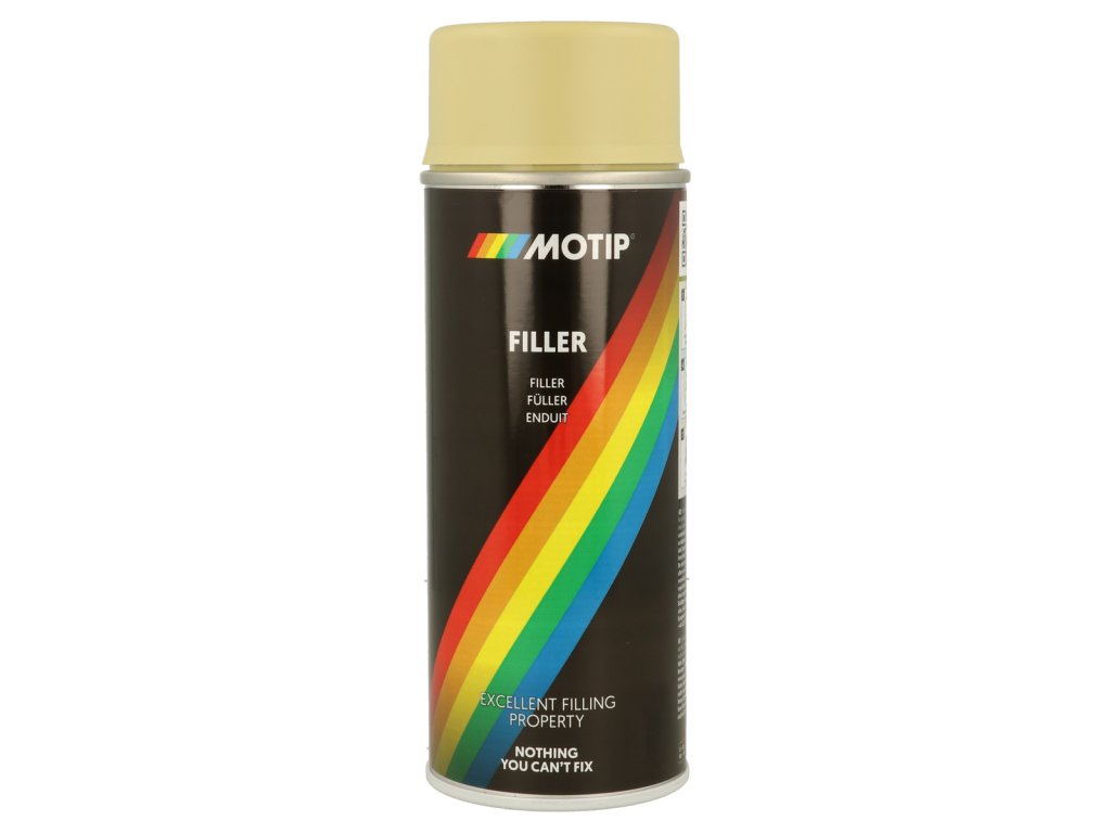 Sprej MoTip akrylový plnič a základ je jednosložkový stříkací plnič ideálny na vyplnění malých pórů, promáčklin a opravu škrábanců po tmelení a broušení před konečným lakováním. Vyznačuje se vysokou plnící schopností a rychlým schnutím. Je možné jej použít také jako speciální základ na železo i ocelový plech, kdy slouží zároveň jako antikorozní základ (primer). Profesionální kvalita.