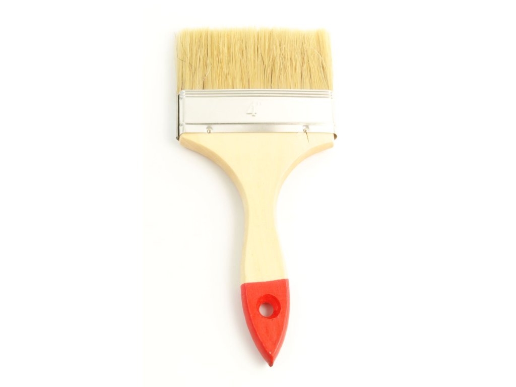 SCHULLER YES plochý štětec velikosti M (tloušťka 6) a šířky 100 mm (4") s ergonomickou dřevěnou rukojetí. Je osazený směsí syntetických a přírodních štětin a kovovou spojkou.