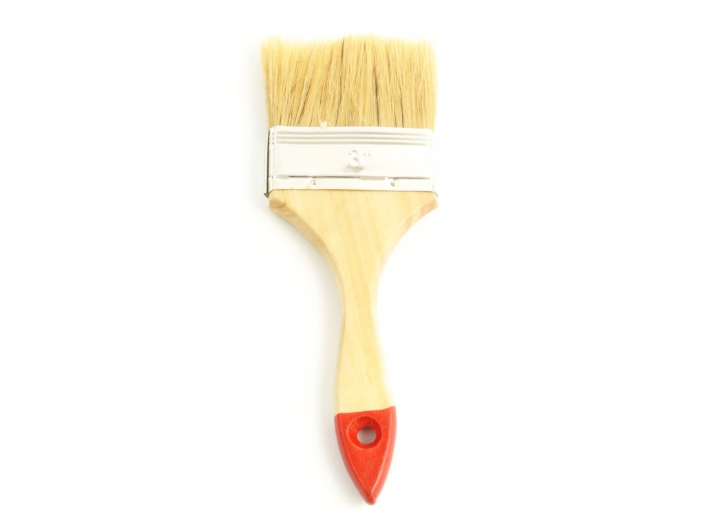 SCHULLER YES plochý štětec velikosti M (tloušťka 6) a šířky 75 mm (3") s ergonomickou dřevěnou rukojetí. Je osazený směsí syntetických a přírodních štětin a kovovou spojkou.