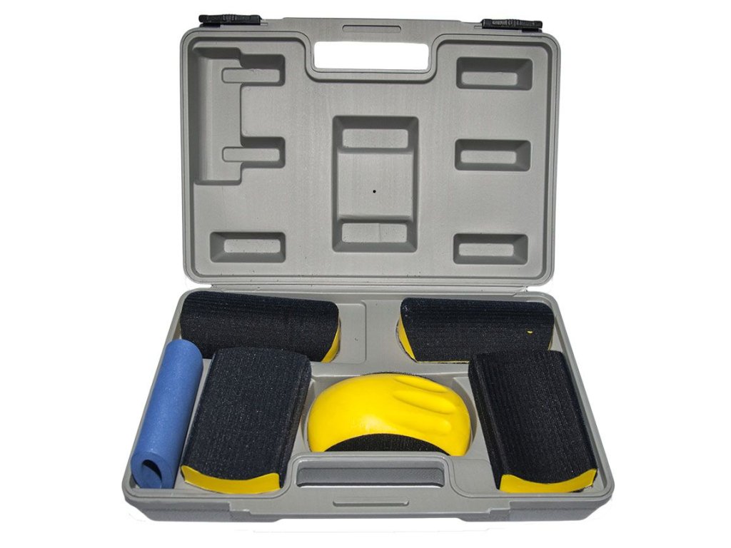SICCO sada oblých (tvarovaných) brusných držáků je určená pro ruční broušení. Obsahuje 2 vypouklé ruční brusky, 2 „promáčklé“ ruční brusky, ohybný brusný držák ve tvaru slzy a držák brusných kotoučů D150 mm. Držáky a hoblíky nejsou vybaveny odsáváním. Sada brusných držáků je dodávaná v praktickém plastovém kufříku.
