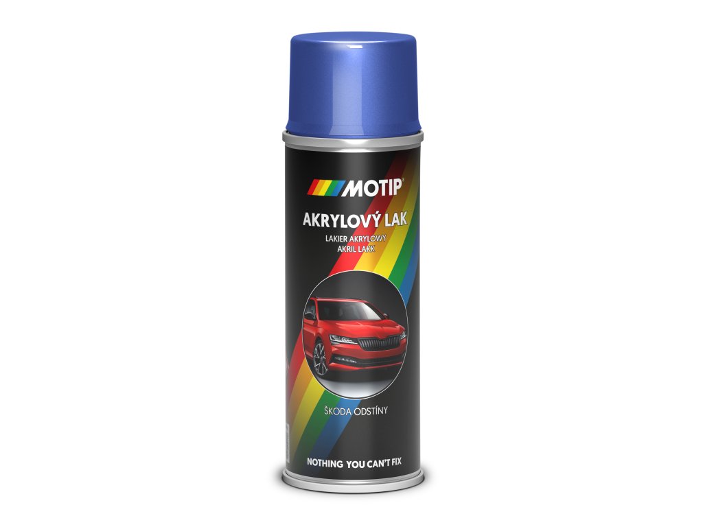 - Sprej autolak MoTip ŠKODA 9463 modrá race metalíza nanášejte ve vícerých tenkých vrstvách ze vzdálenosti cca 20 - 30 cm v intervale 3 - 5 min. mezi jednotlivými vrstvami. Využijte patentovaný stříkací nástavec na sprej SAFEWORLD CanGun1 a dosáhněte profesionálního výsledku!