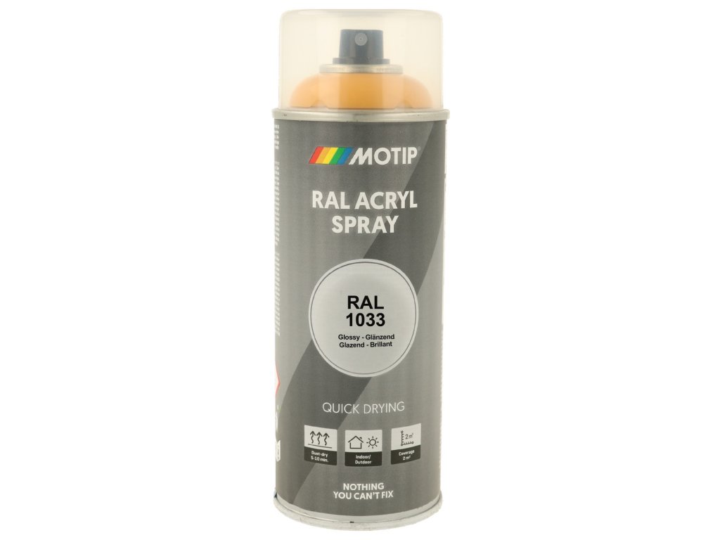 Sprej barva RAL 1033 Jiřinková žlutá lesklá MoTip ACRYL 400 ml