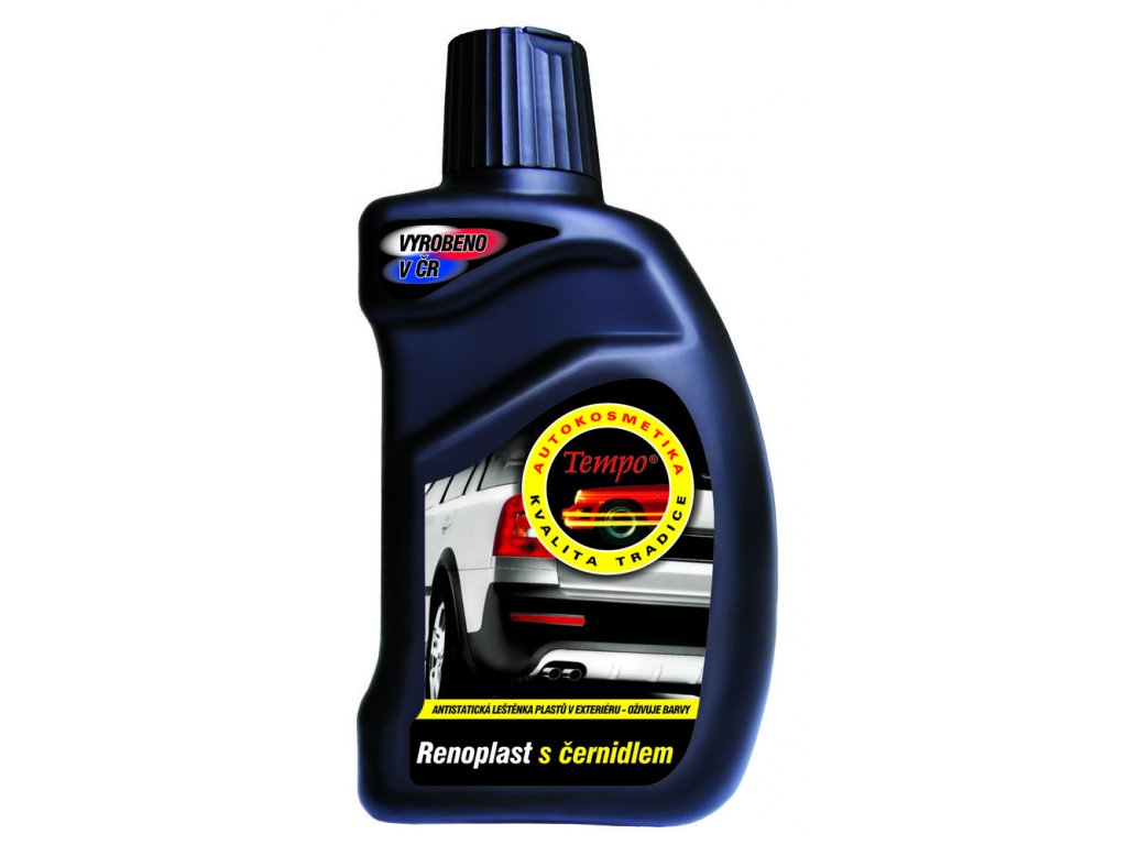 TEMPO RENOPLAST s černidlem leštěnka plasty a gumu čistí, renovuje a konzervuje černé vnější plastové a pryžové součásti automobilů, jako jsou nárazníky, spoilery, pneumatiky, lišty, čelní masky a vrací jim původní černý vzhled a oživuje barvy. Ošetřený povrch lépe odolává povětrnostním vlivům. Prodlužuje pružnost a pevnost.
