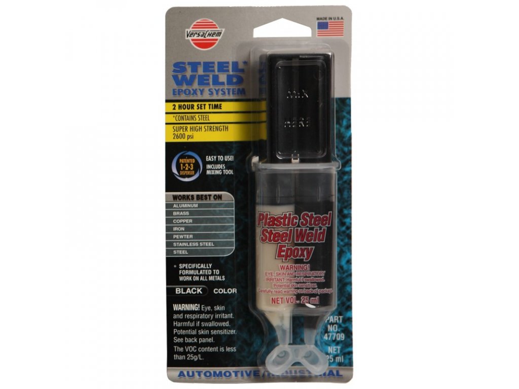 VERSACHEM epoxidový tekutý kov je dvousložkový, rychleschnoucí epoxidový tmel s vysokou pevností. Vytváří vysoce pevné a kvalitní spoje použitelné v průmyslu, opravě automobilů, v domácnosti i v dílně. VERSACHEM epoxidový tekutý kov je „sváření za studena“, které je po vyschnutí možné vrtat, obrábět, tmelit či kovat.
